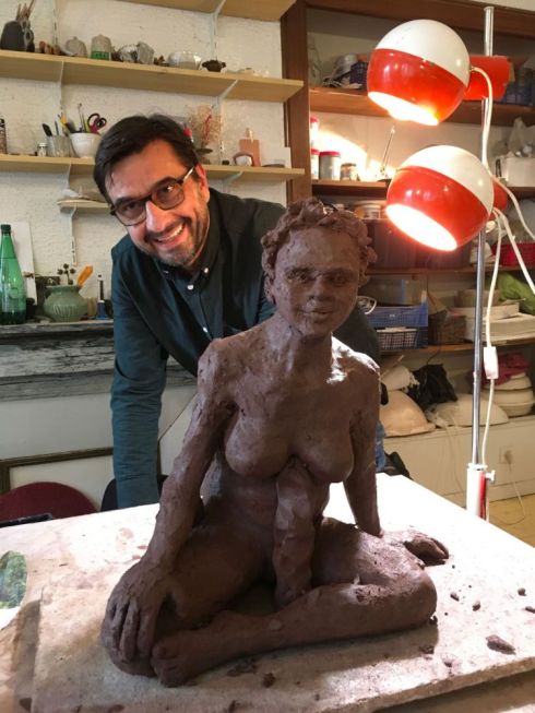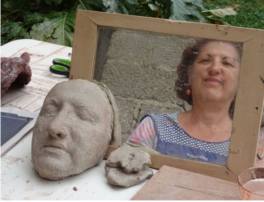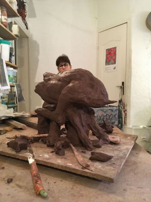 Stage sculpture – modelage terre avec des stagiaires venues de France à L'espace Sobo