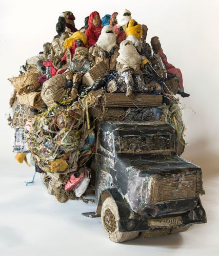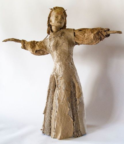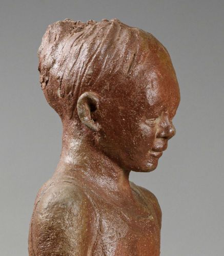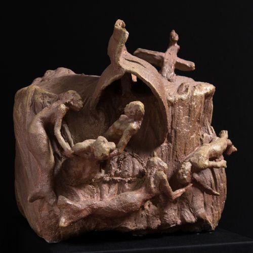 Mon œuvre est principalement modelée en terre et cuite ensuite à haute-température. C'est une sculpture narrative qui donne la part belle à la figuration humaine.