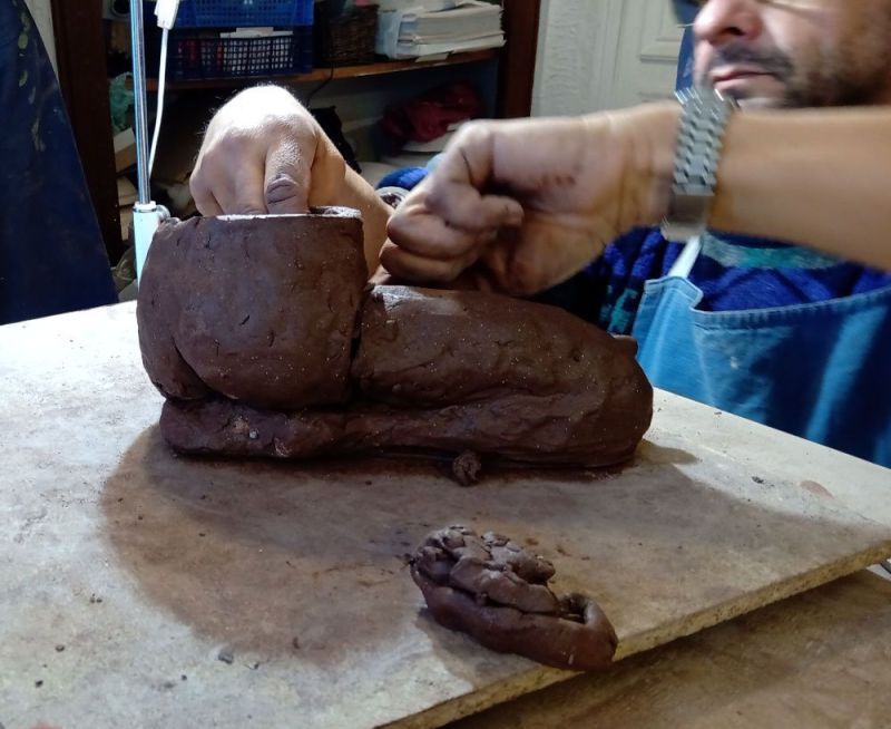 « sculpture narrative » à l'atelier. Cabrerets. France
