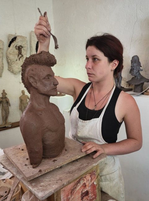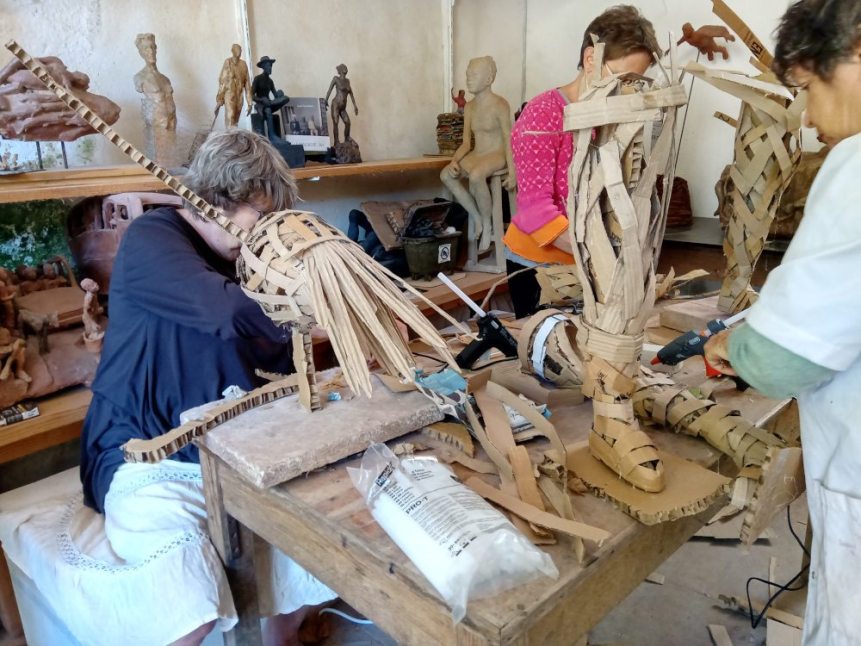 Stage sculpture – modelage terre avec des stagiaires venues de France à L'espace Sobo